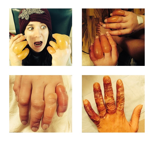 호주에서 4년전 캐나다로 이민을 떠난 한 여성이 바 밖에서 술에 취한채 잠이 들었다가 끔찍하게 동상이 걸린 모습이 보도됐다. 양손에 심각한 동상이 걸렸는데 심각한 상태다. 그녀는 캐나다 사스카츄완의 프린스 앨버타에서 친구와 술을 마시다 새벽 시간 담배를 피러 밖에 나갔다가 영하 30도의 날씨에 밖에서 잠이 든 것이다. 그녀는 재킷도 장갑도 끼지 않은채 밖에 나간지 3시간 뒤 양로원 밖에서 웅크리고 자다가 발견되었다.다행이 생명은 건졌지만 최악의 경우 손을 모두 잃을 수도 있다.